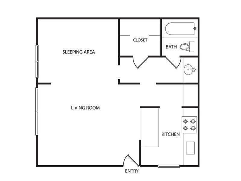 Studio, 1 Bath, 570 sq ftAvailable NowModel Gallery