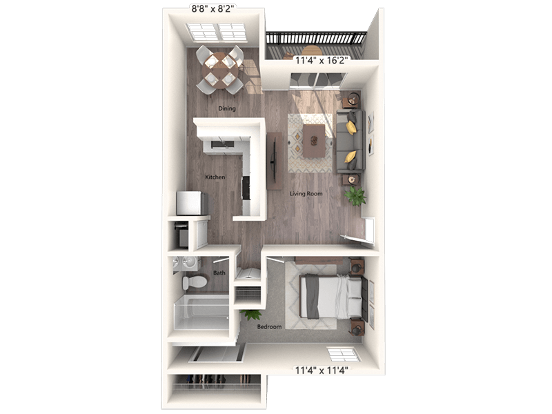 1 Bed, 1 Bath, 700 sq ftAvailable NowModel Gallery