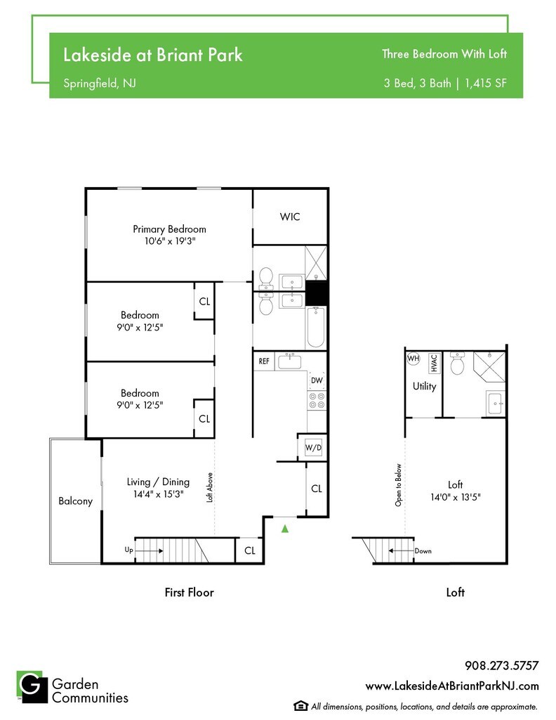 Price Availability Date Unit Sq Ft From $3,900 Call for Availability $2.76/sq.ft. - Three Bedroom with Loft 1415 sq ft Model Amenities and Features