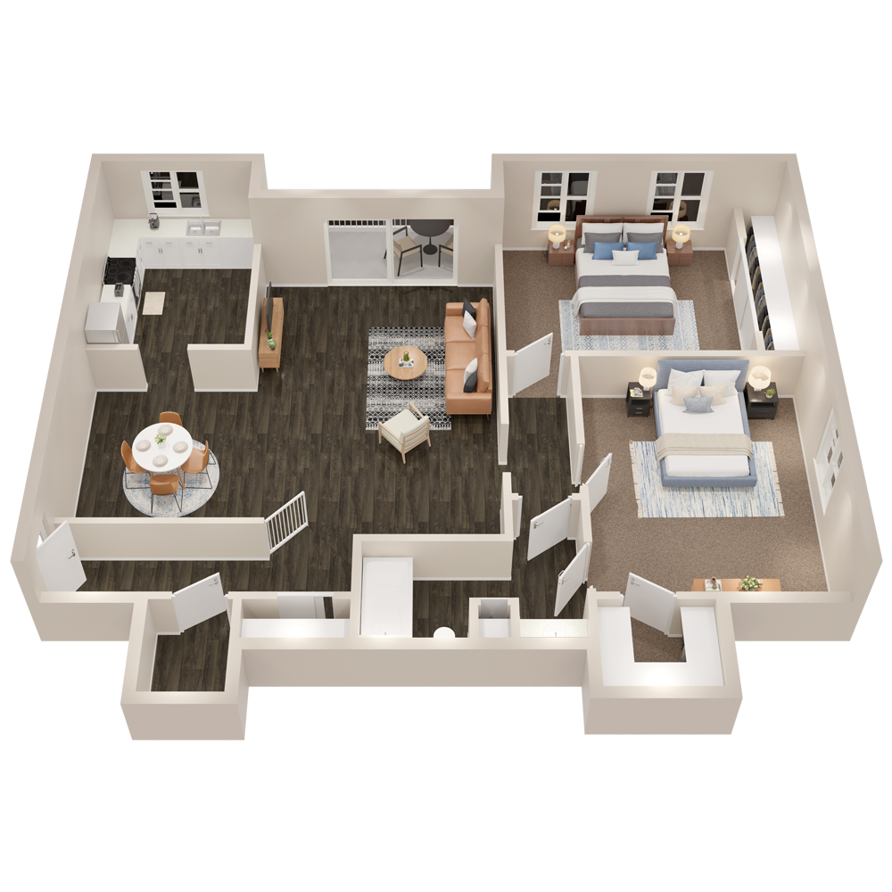 2 Beds, 1 Bath, 883 sq ftModel Gallery