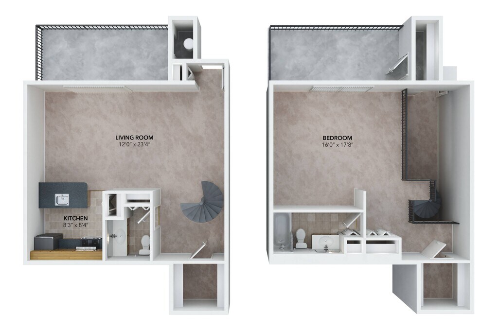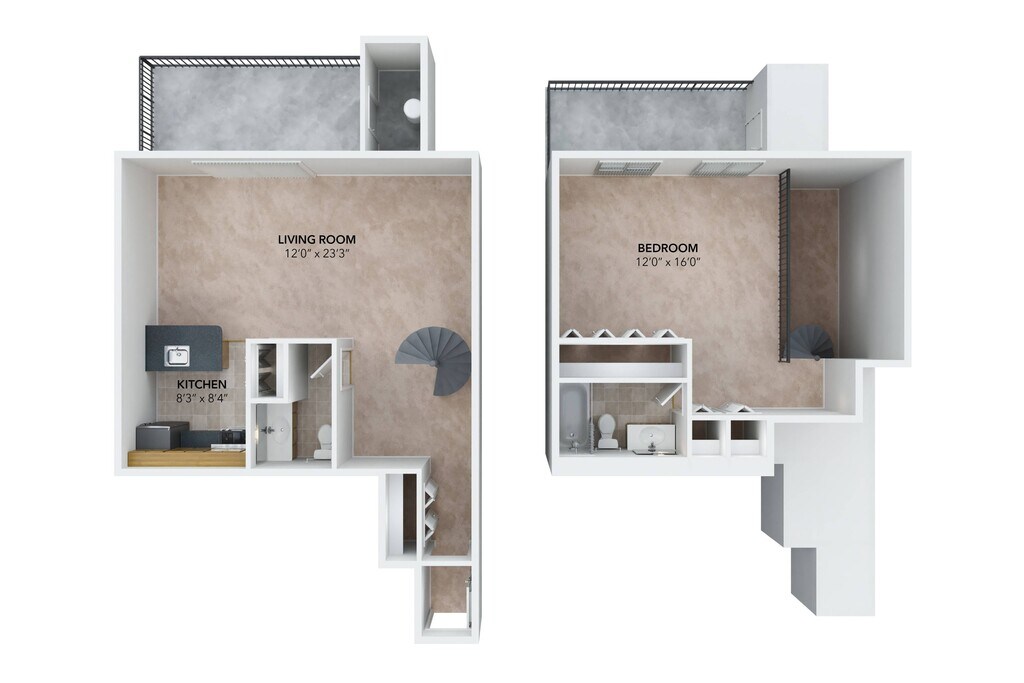 1 Bed 1.5 Bath Spiral Loft 2A - Floorplan 1 2 Bedrooms