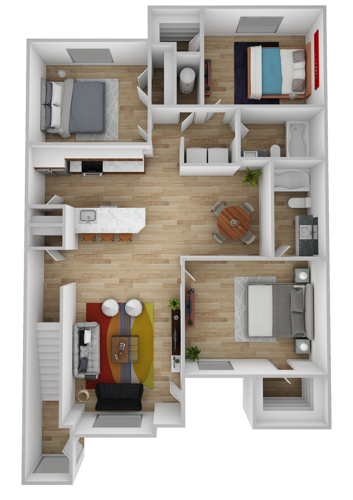 Apartment Model: 2BU2From $1,3322 Bedroom, 2 Bath, 1021 sq ftAvailable NowFloorplansPhotos![]()