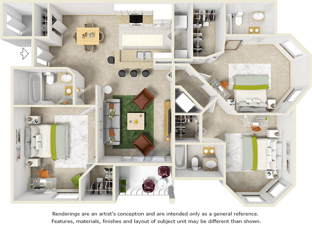 - Private bedrooms with private bathrooms