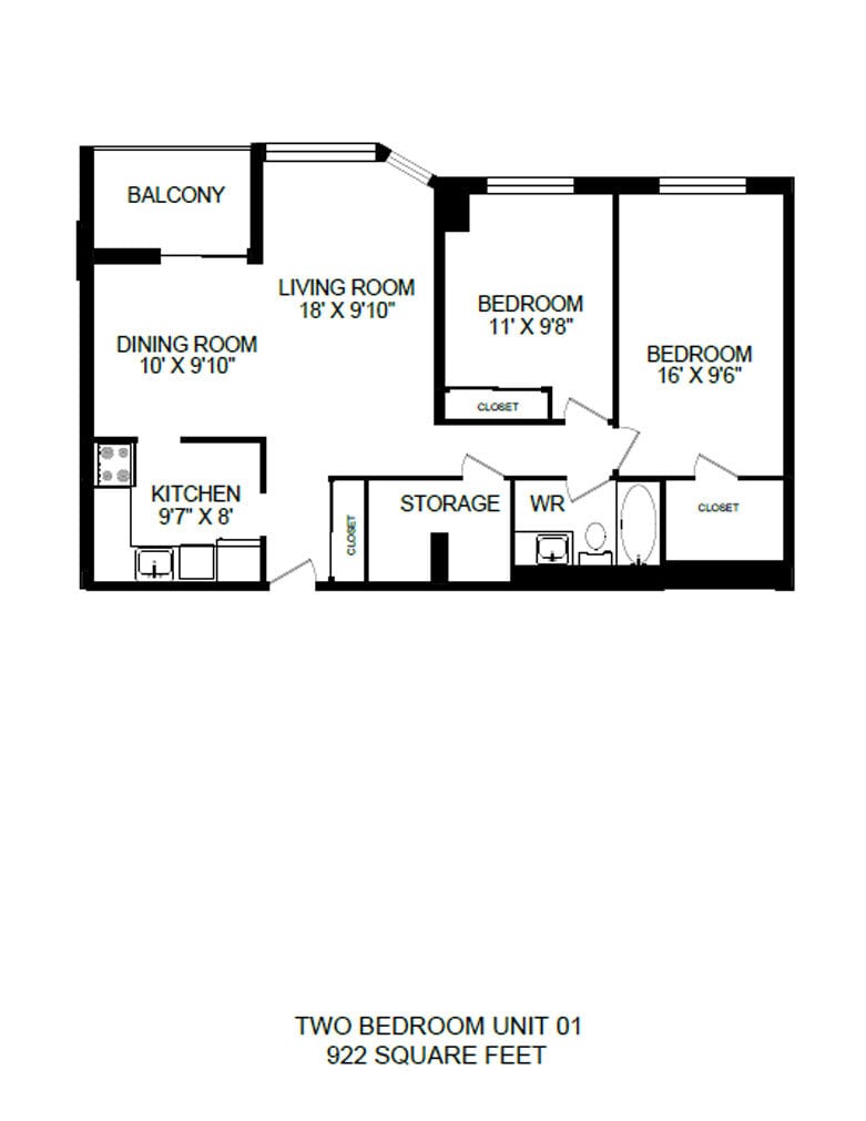2 Beds, 1 Bath, 922 sq ftAvailable NowModel Gallery