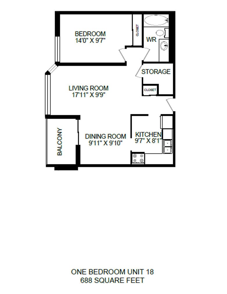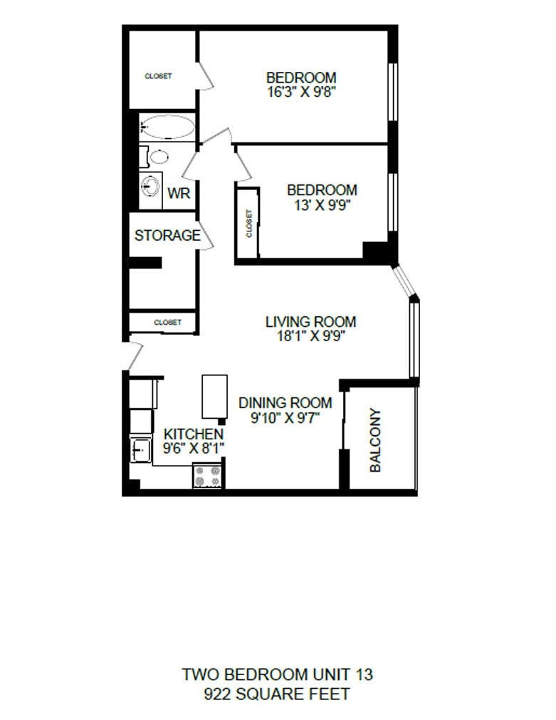 1 Bedroom - Floorplan 8 2 Bedrooms