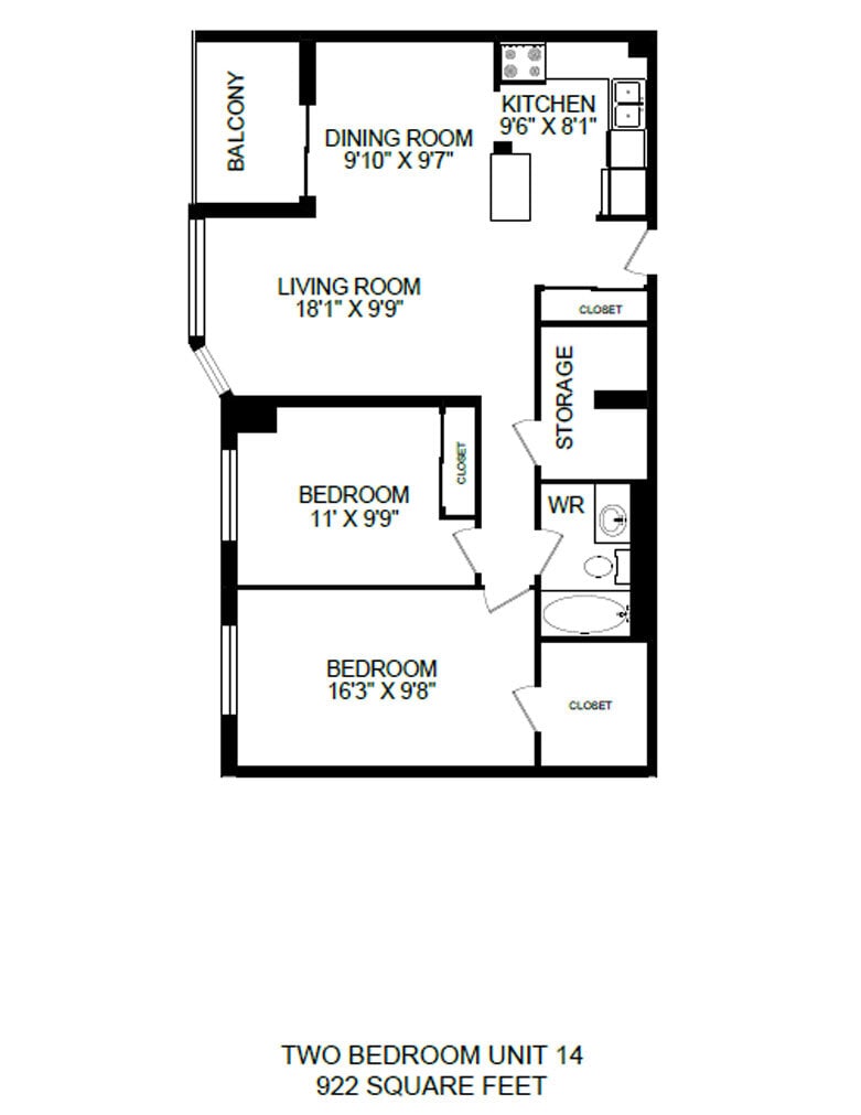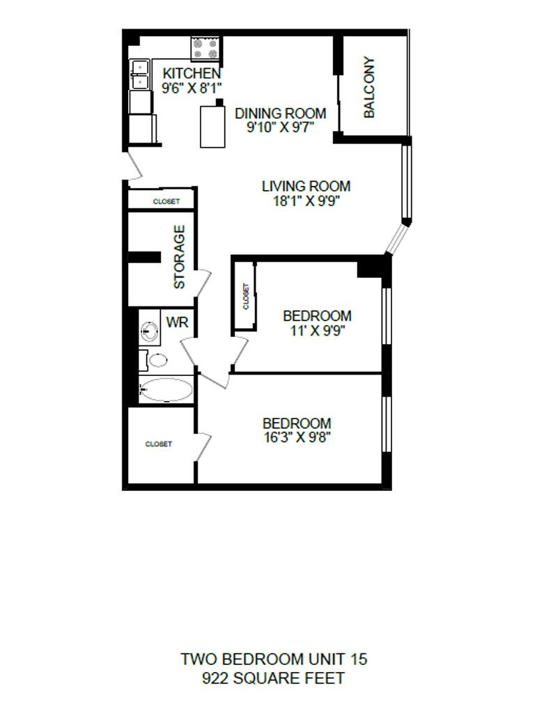 Apartment Model: 2 Bedroom$2,2452 Bedroom, 1 Bath, 922 sq ftAvailable Now![]()