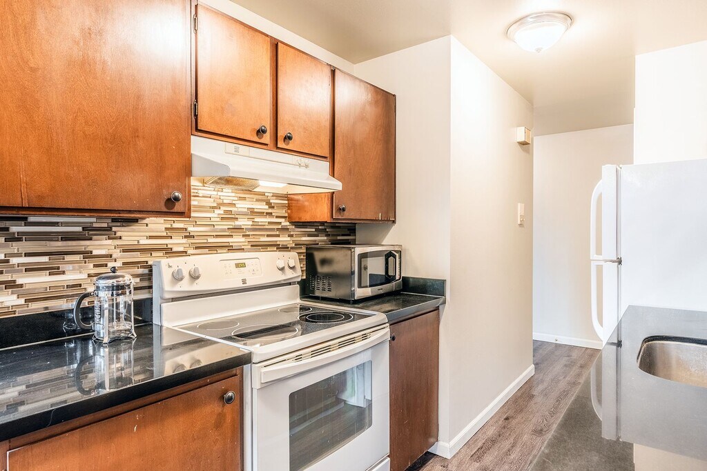 Welcome to Lakeview Place, a spacious ground-floor apartment located in the heart of Seattle, WA. This apartment boasts two bedrooms and 1.5 bathrooms, offering ample space for your comfort and convenience. The kitchen is equipped with a dishwasher and granite countertops. The large closets provide plenty of storage space, with an additional storage closet off of the private patio space. For those who drive, garage parking is available. Laundry facilities are on-site. Make Lakeview Place your home today. Offering first month's rent free!