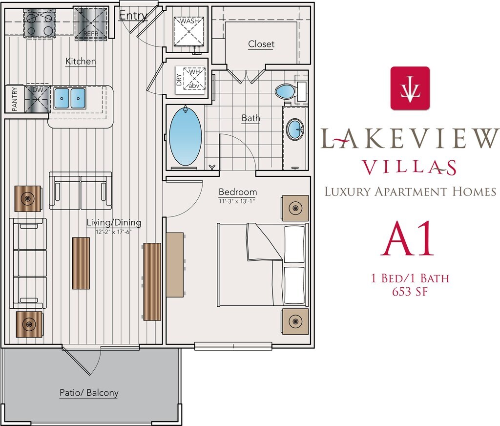 Apartment Model: A1From $9391 Bedroom, 1 Bath, 653 sq ftAvailable NowFloor plans are artist's rendering. All dimensions are approximate. Actual product and specifications may vary in dimension or detail. Not all features are available in every rental home. Prices and availability are subject to change. Base rent is based on monthly frequency. Additional fees may apply, such as but not limited to package delivery, trash, water, amenities, etc. Deposits vary. Please see a representative for details.