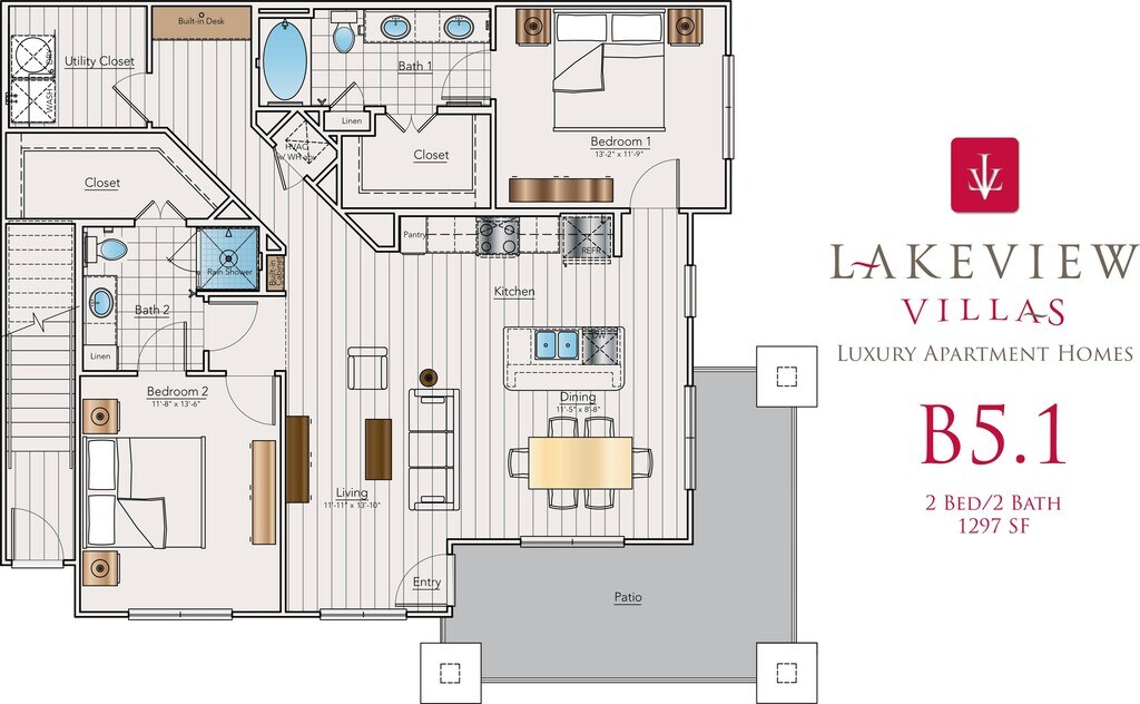 1 Bedroom to 2 Bedroom Apartments at Lakeview Villas currently range from $939 to $2,052