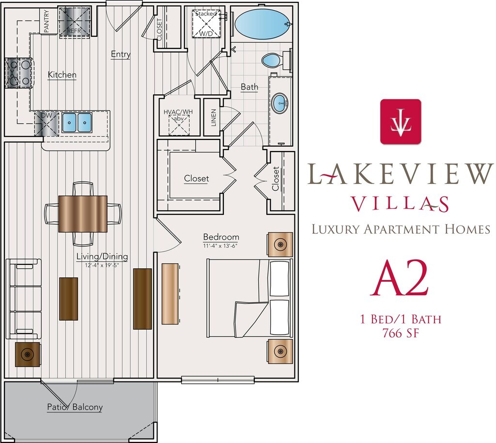 Apartment Model: A2From $1,1051 Bedroom, 1 Bath, 766 sq ftAvailable NowFloorplansPhotos![]()