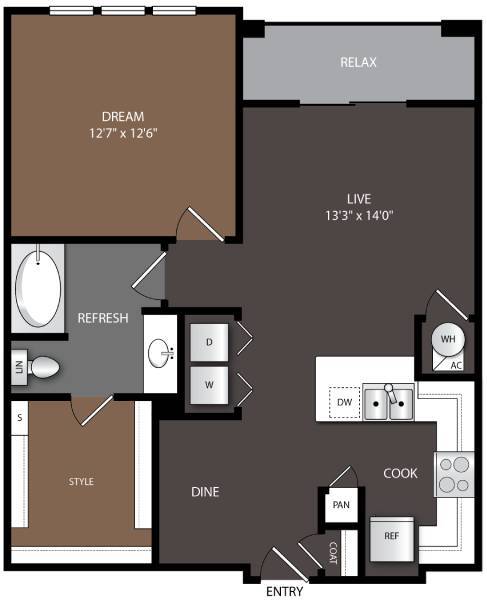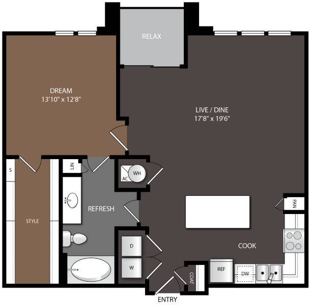 1 Bed, 1 Bath, 918 sq ftAvailable NowLargest 1 BedroomThis is the largest 1 Bedroom at this PropertyModel Gallery