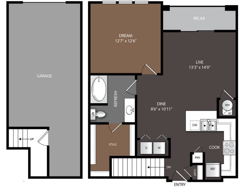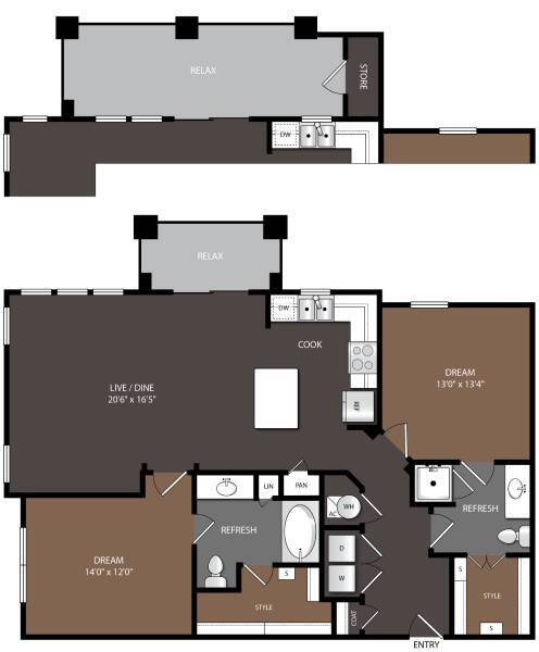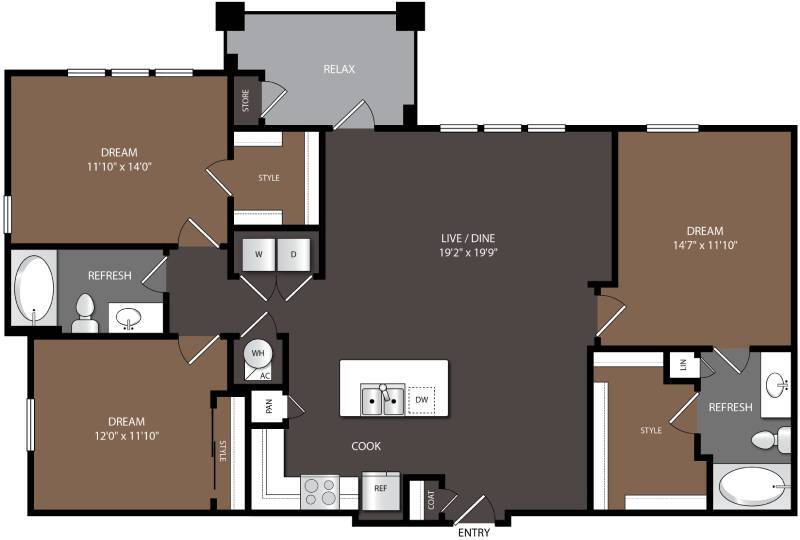 1 Bed, 1 Bath, 871-899 sq ftAvailable NowModel Gallery