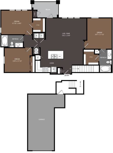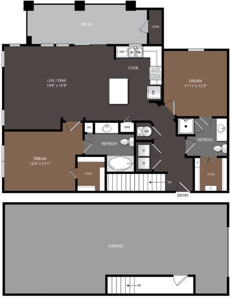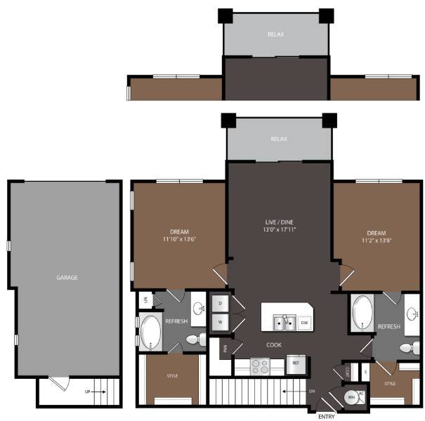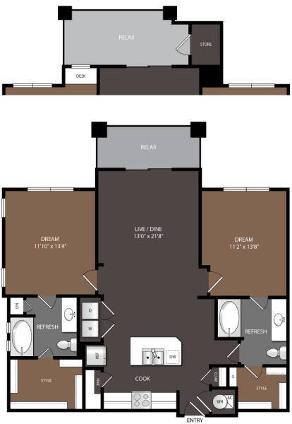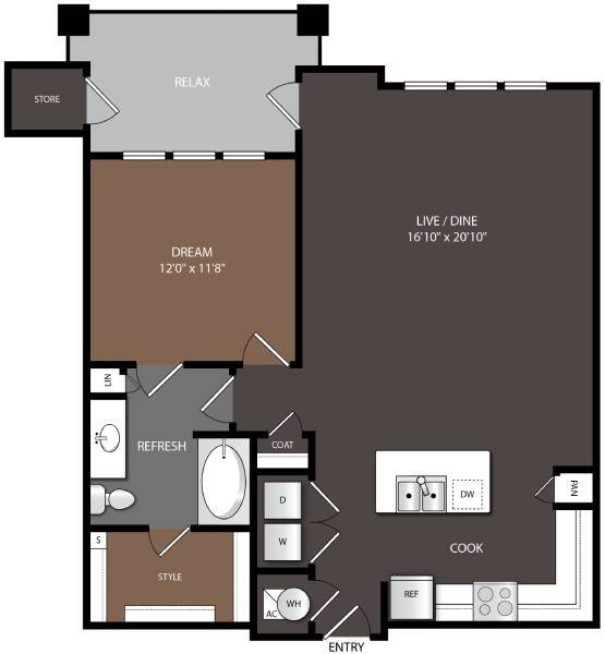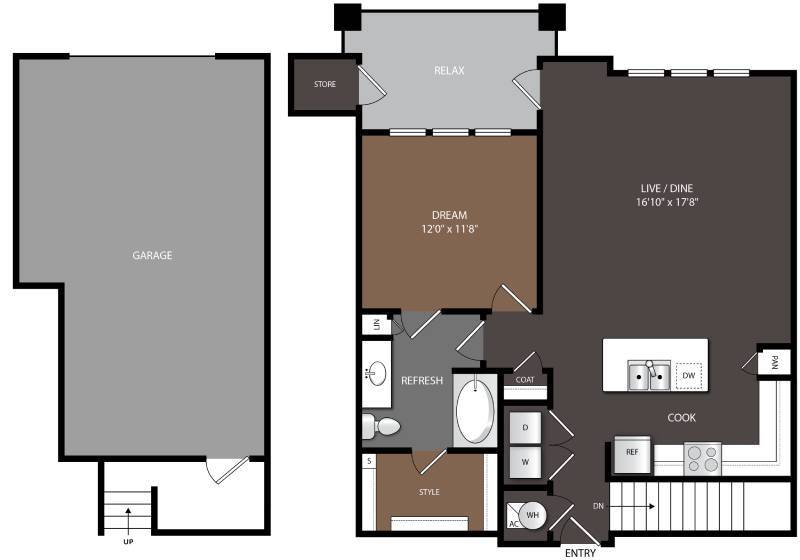 1 Bed, 1 Bath, 802-807 sq ftAvailable NowModel Gallery