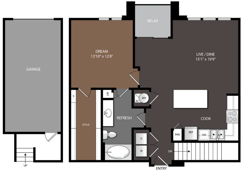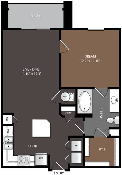 1 Bed, 1 Bath, 767-772 sq ftAvailable NowModel Gallery