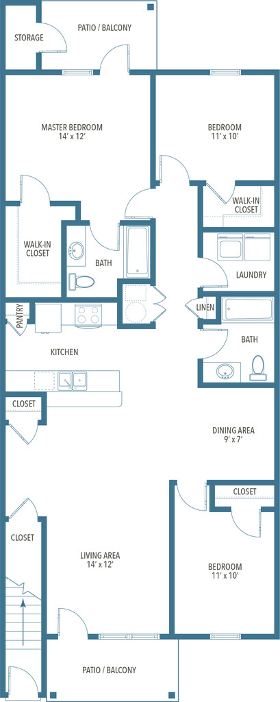 Two Bedroom - Floorplan 9 3 Bedrooms