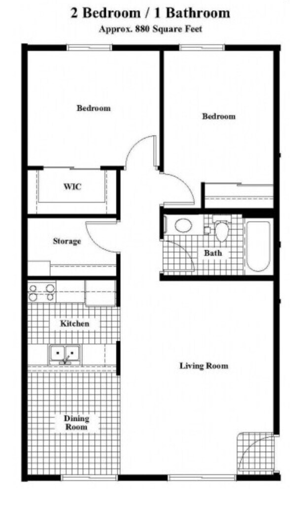2 Beds, 1 Bath, 900 sq ftPlus FeesAvailable NowModel Gallery