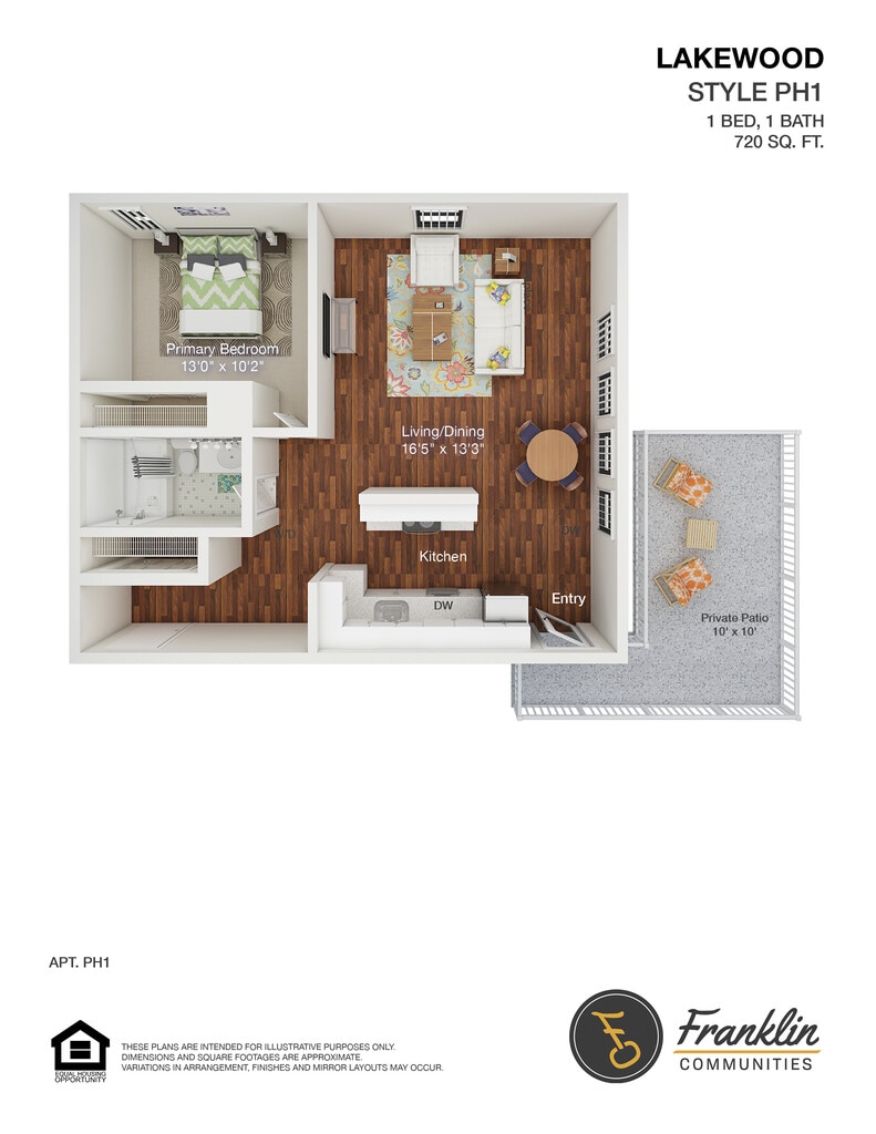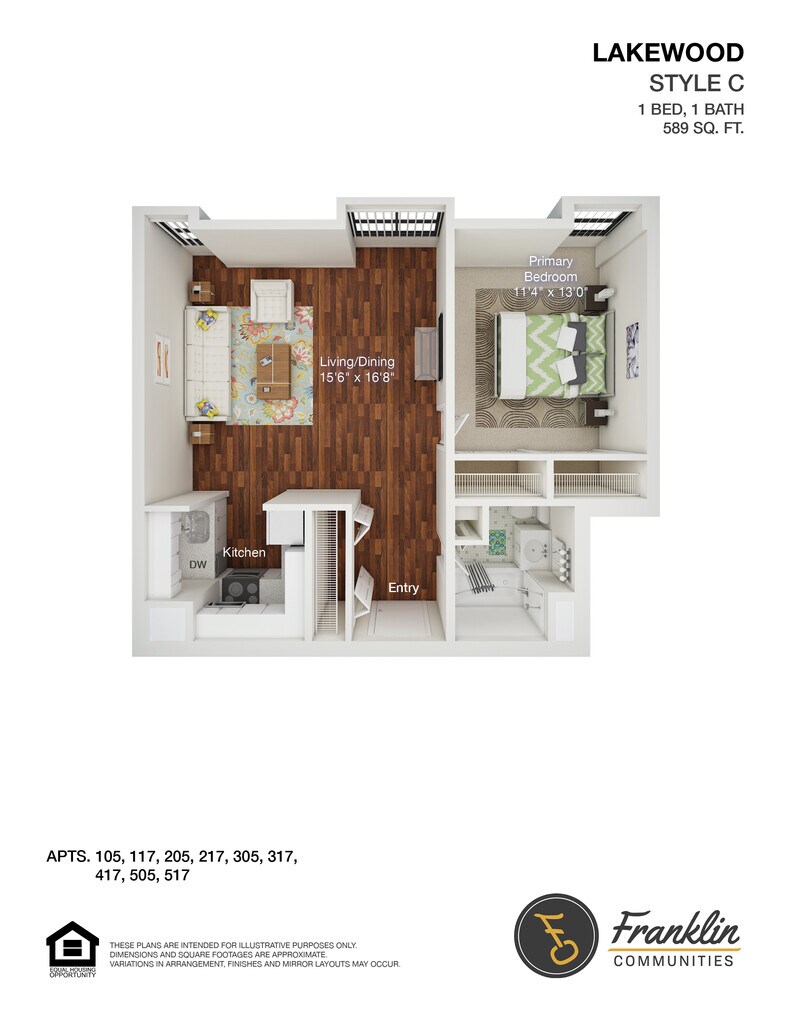 Excellent 1 bedroom apartment at Franklin Communities Lakewood Apartments