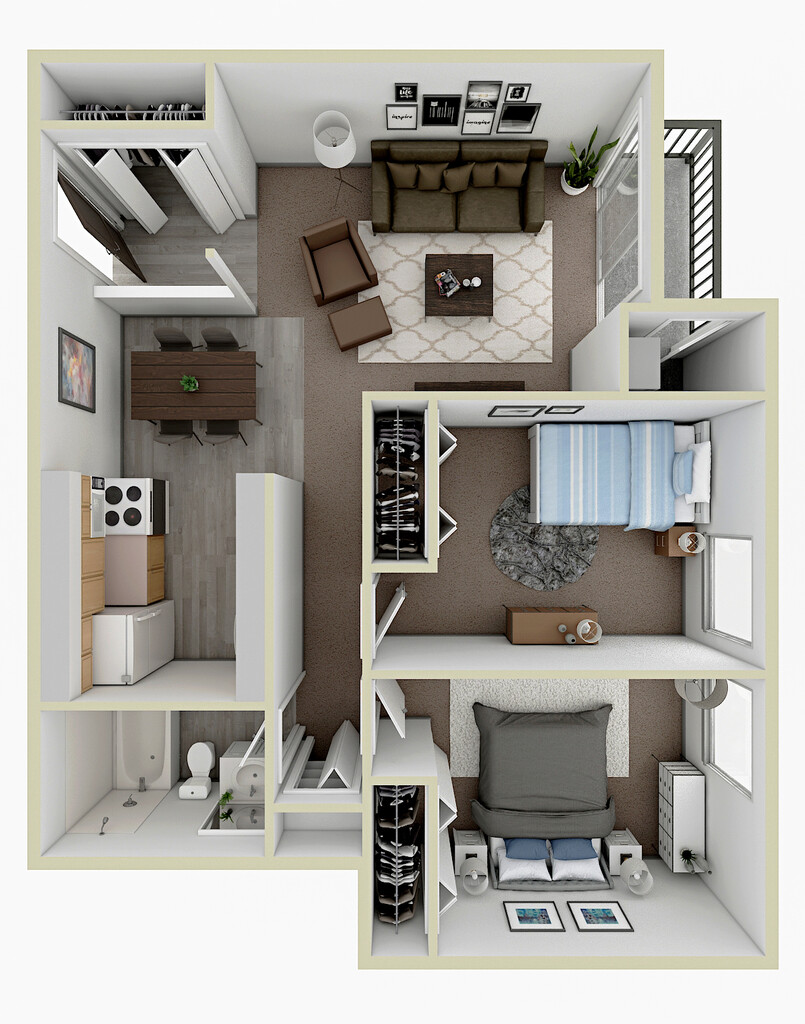 Apartment Model: HarleyFrom $1,2931 Bedroom, 1 Bath, 757 sq ftAvailable January 7, 2026FloorplansPhotos![]()
