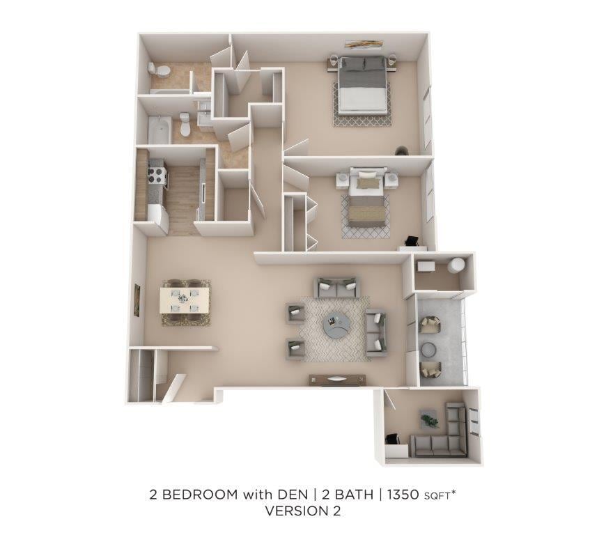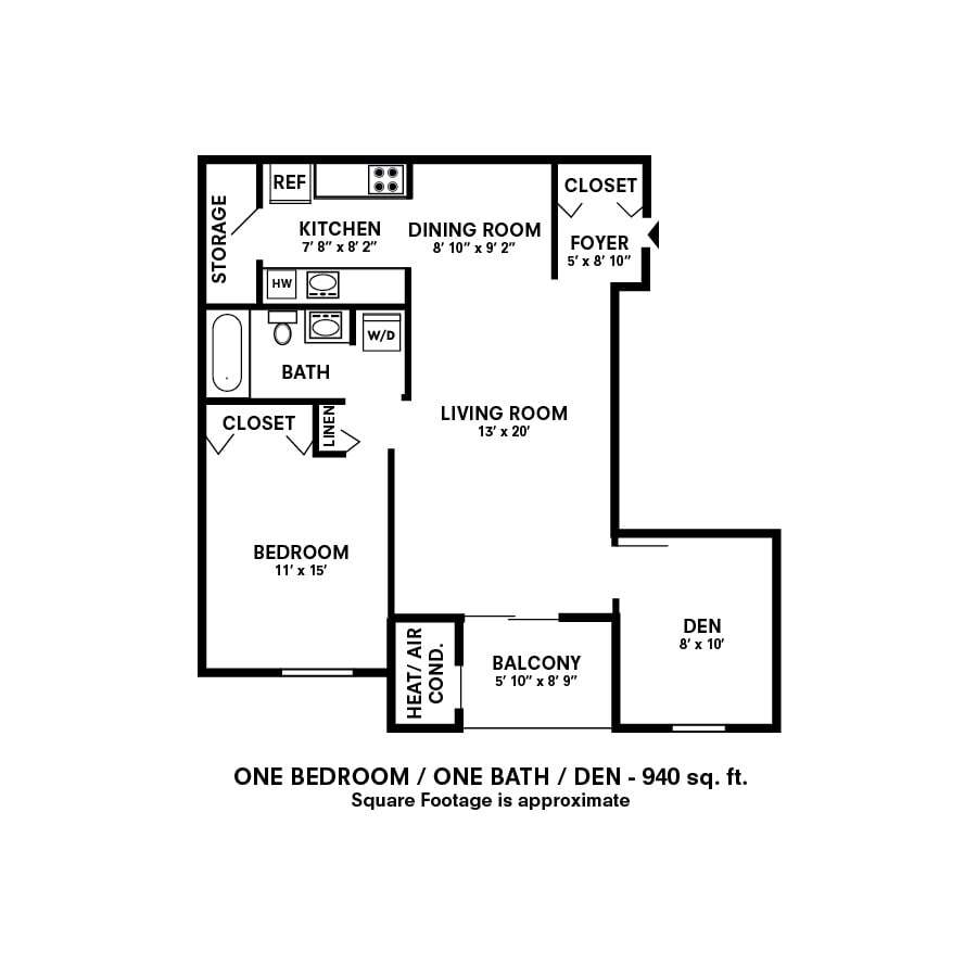 Apartment Model: One Bedroom w/ Den-940 sqftFrom $1,3501 Bedroom, 1 Bath, 940 sq ftAvailable December 15, 2025![]()