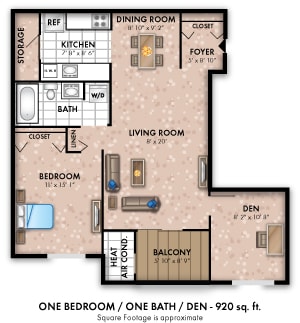 One Bedroom w/ Den-940 sqft - Floorplan 1 ![]()