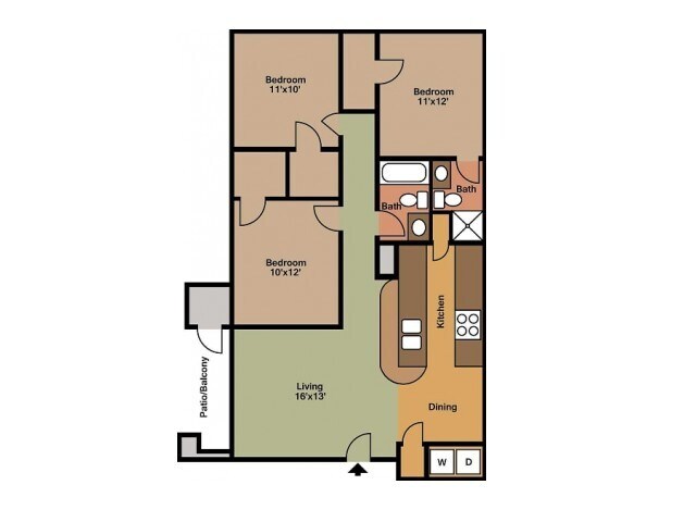 Apartment Model: 3 BedroomFrom $1,1953 Bedroom, 2 Bath, 1100 sq ftAvailable Now![]()