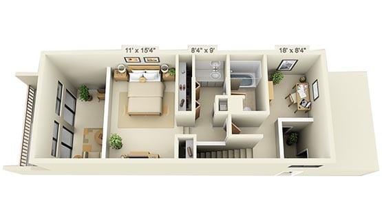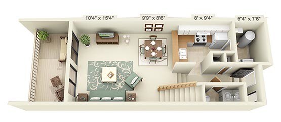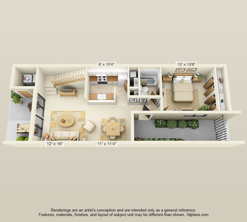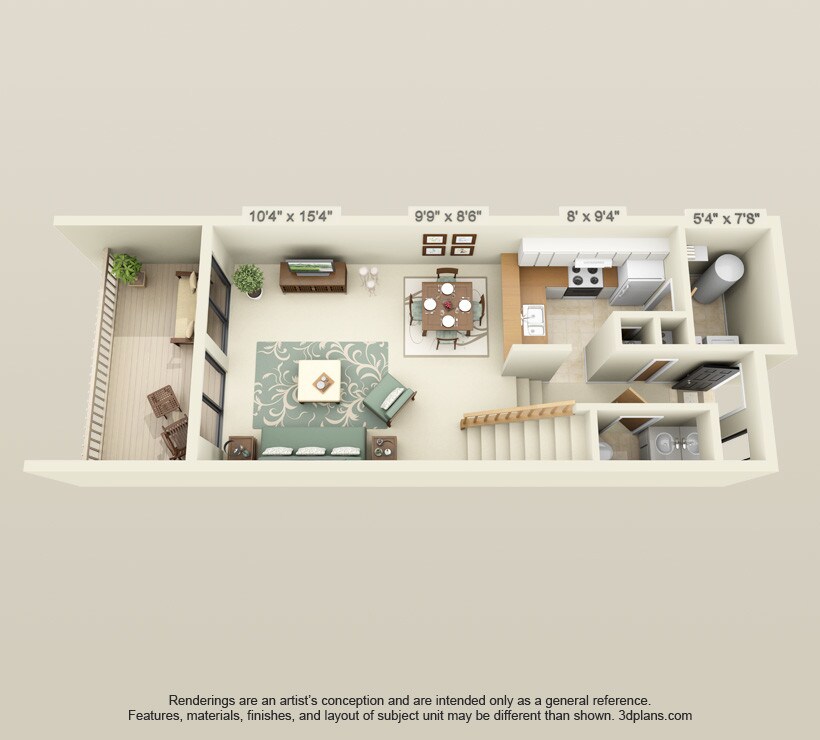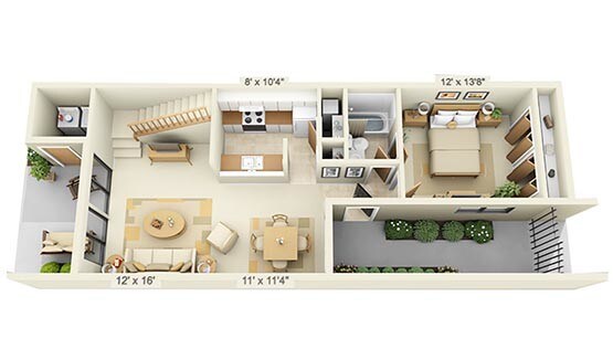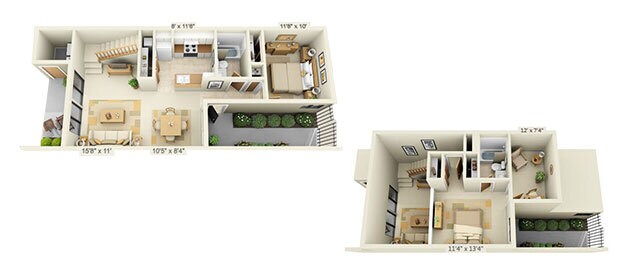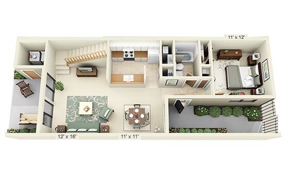 1 Bed, 1.5 Baths, 850 sq ftAvailable NowModel Gallery