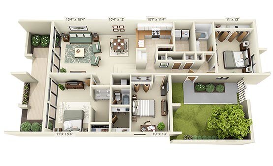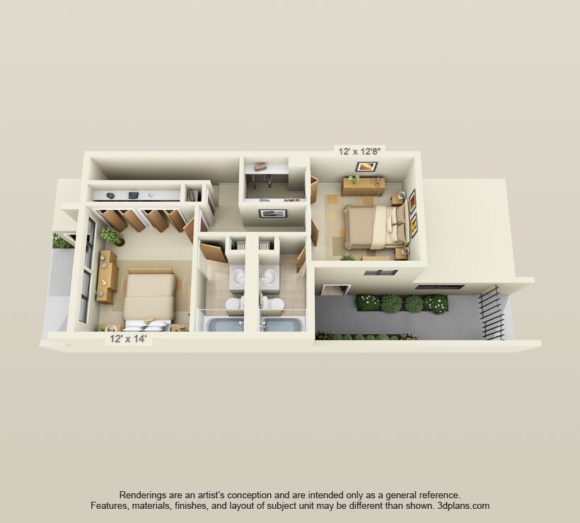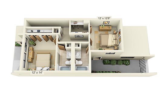 2 Beds, 2 Baths, 1281-1285 sq ftAvailable NowLargest 2 BedroomThis is the largest 2 Bedroom at this PropertyModel Gallery
