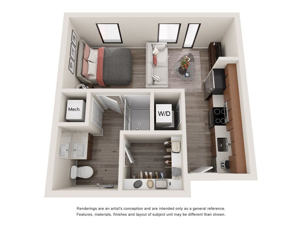 Studio, 1 Bath, 523 sq ftModel Gallery