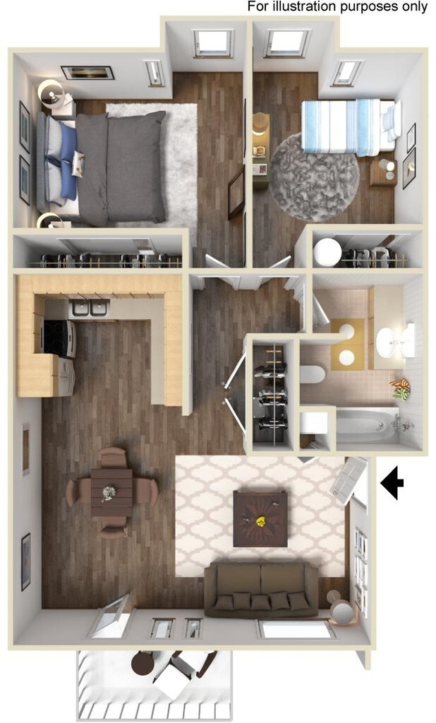 Apartment Model: 2 Bedroom WFrom $1,3602 Bedroom, 1 Bath, 910 sq ftAvailable Now![]()
