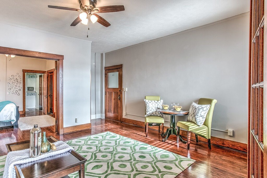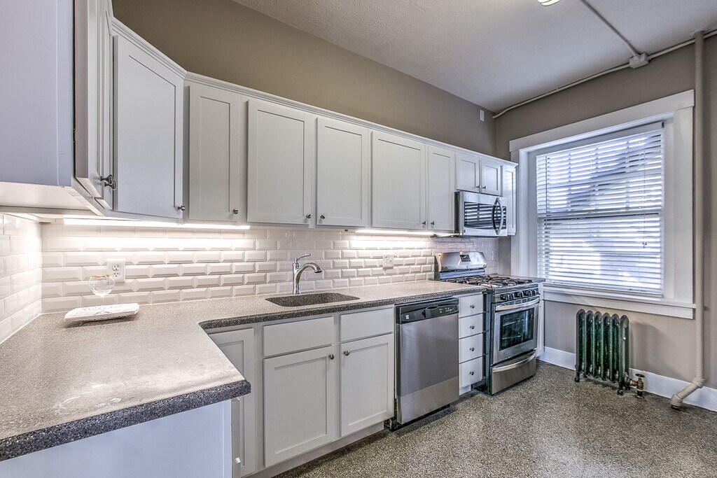 Welcome to Lancaster Flats! Omaha's first luxury apartment community. You'll LOVE the vintage character combined with modern upgrades throughout the flat. New kitchen and new bath, new stainless steel appliances and solid surface countertops, living room, sunroom, wood, and terrazzo floors, restored craftsman woodwork, cozy radiant heat. There is a state of the art mini-split central a/c system to keep you cool in the heat of summer. The bedroom is spacious with glass french doors that open in the living room. Tall 9-foot ceilings throughout as well. Utilities: Rent plus utilities. Reimbursements include dedicated 100 Mb wifi, gas, water, sewer, trash, and recycling. Pay electric directly to the power company OPPD. There is an organic community garden space for growing herbs and vegetables of your choice in the secluded back courtyard. Enclosed dog run with artificial turf for convenient dog bathroom needs. Also, it will service a place to temporarily leave dogs outdoors to enjoy the outdoors while you tend to your own raised garden plot. FREE laundry in the spacious and ornate laundry room, and a one of a kind on-site bike storage facility you'll have to see to believe and more! Located downtown in the historic Columbus Park area between Old Market and Midtown Omaha.