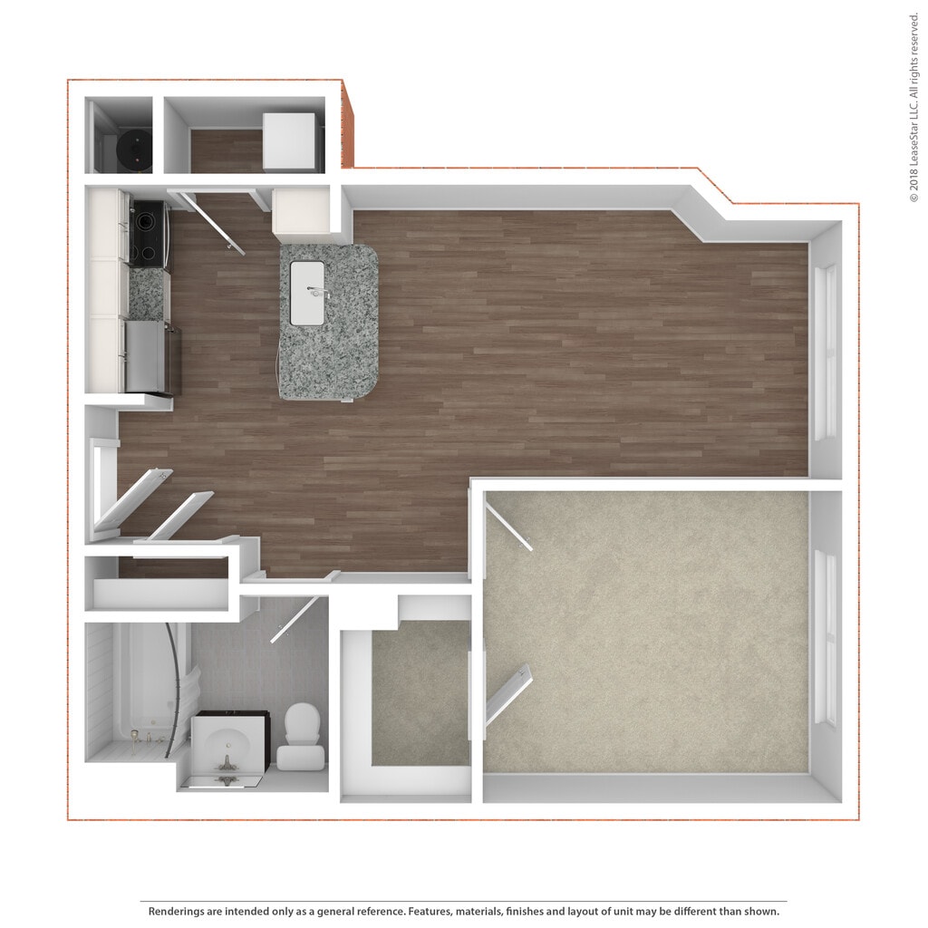 SA - Floorplan 6 Apartment Unit: 356Apartment Model: SA$2,250Studio, 1 Bath, 576 sq ftAvailable May 9, 20261 Bedroom