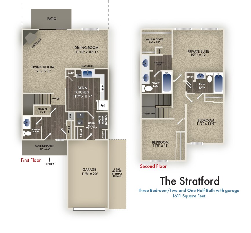 Apartment Model: Stratford3 Bedroom, 2.5 Bath, 1611 sq ftUnavailable![]()