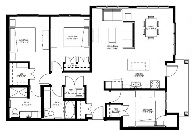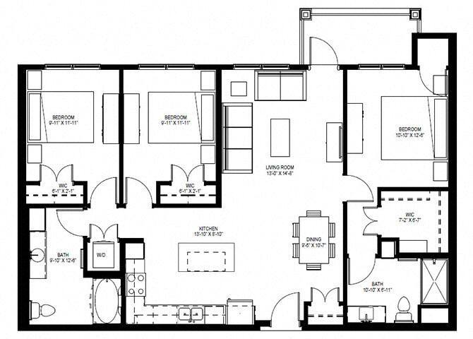Three Bedroom A - Floorplan 1 Apartment Unit: 1-114Apartment Model: Three Bedroom A3 Bedroom, 2 Bath, 1320 sq ftAvailable April 10, 2026Three Bedroom F