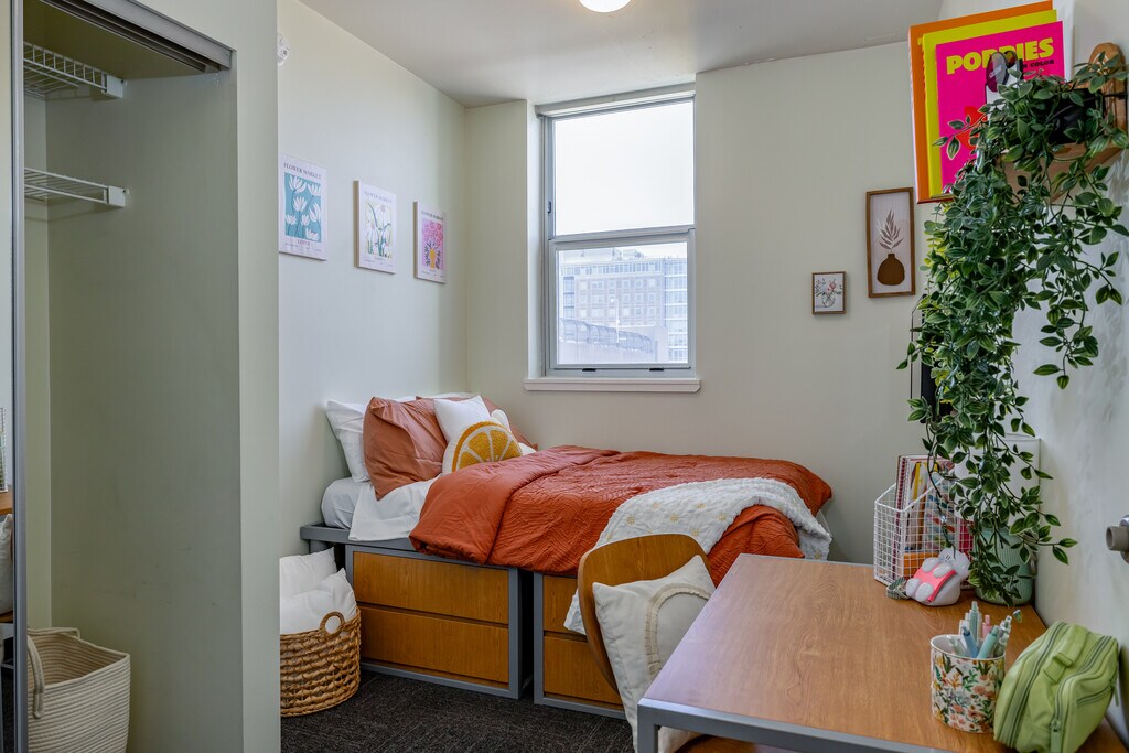 April 10, 2019The location is the only good thing about this OVERPRICED building. The bedrooms are tiny (smaller than the smallest dorm room) and have the bare minimum. The “desk” has no drawers or bookshelves. Management was very disorganized. Every month we would get an email saying that our rent was late, even though the check had already cleared. When we would point this out, management would say to disregard the mass email regarding late rent. This would happen every month!Review from Apartments.com