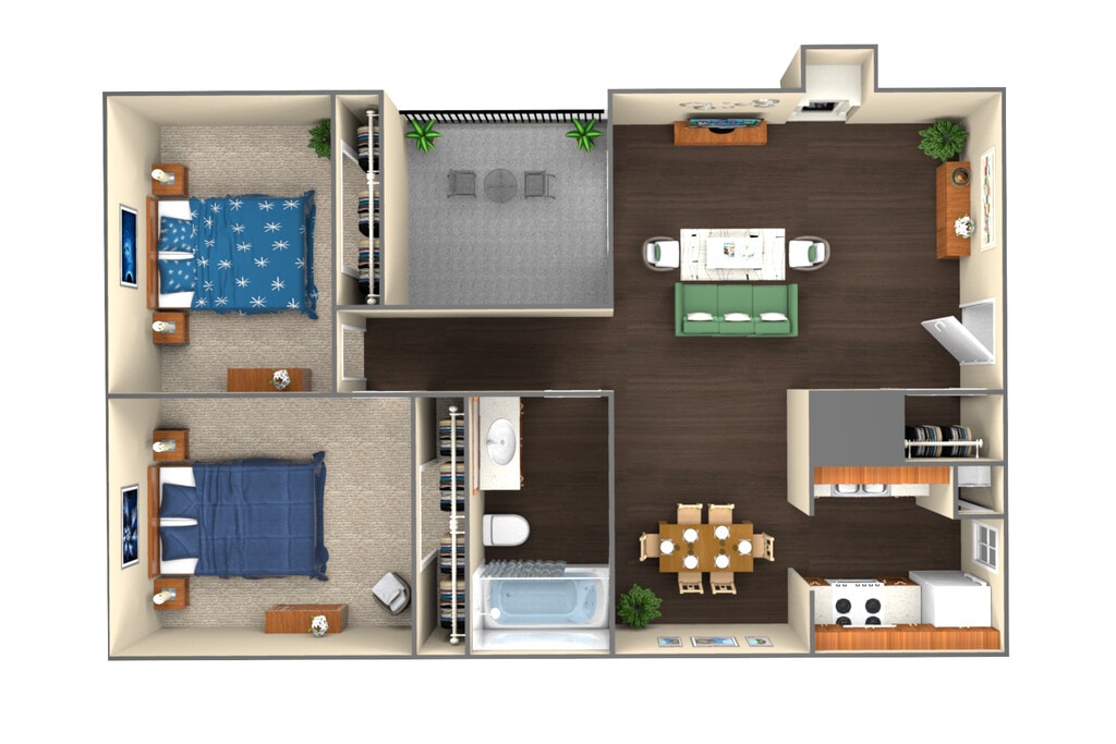 2 Beds, 2 Baths, 1002 sq ftModel Gallery