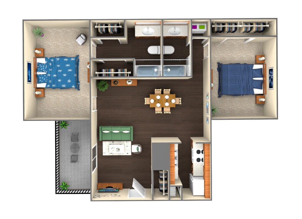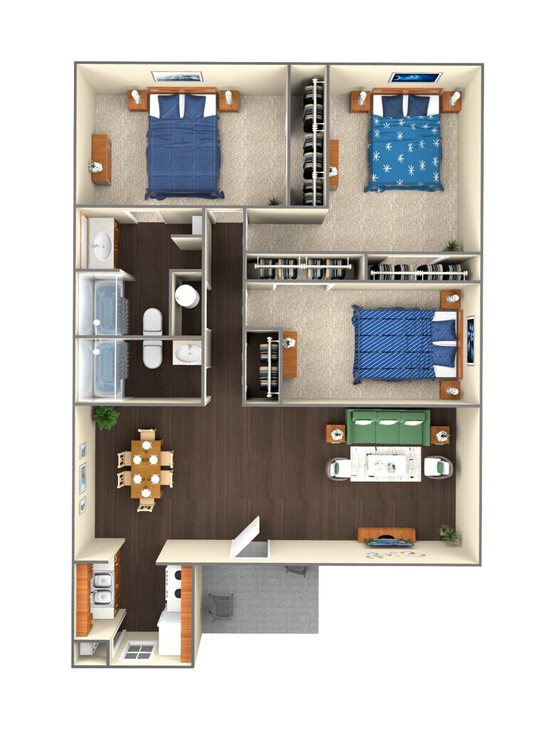 2 BED 2 BATH - Floorplan 2 3 Bedrooms
