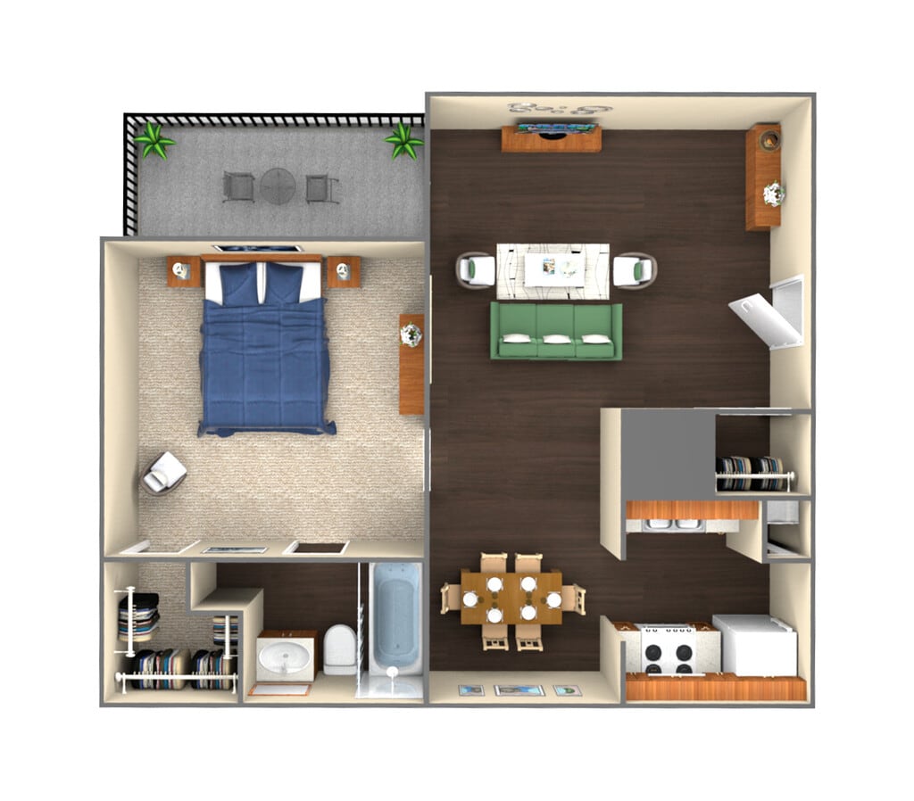 1 Bed, 1 Bath, 693 sq ftModel Gallery