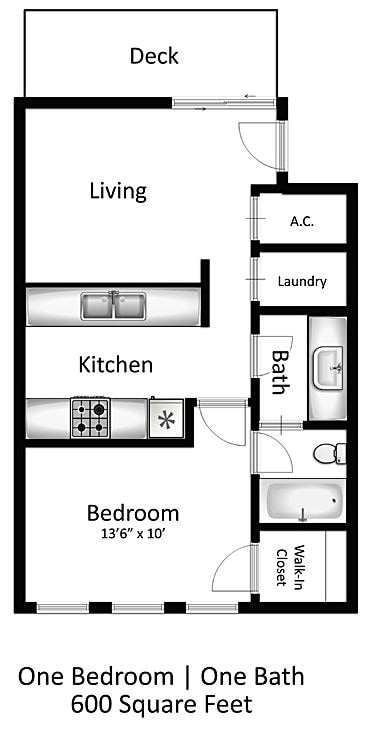 1 Bed, 1 Bath, 600 sq ftAvailable NowModel Gallery