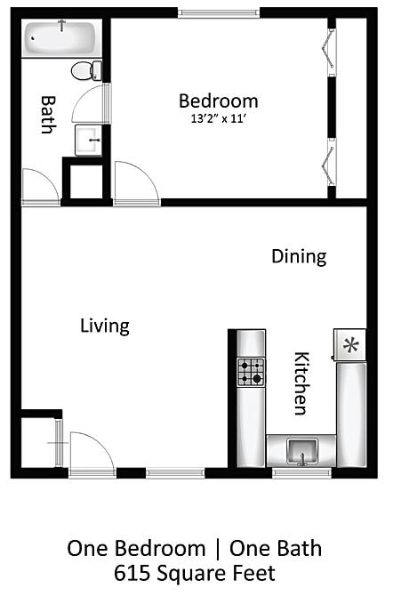 Apartment Model: 1B$8851 Bedroom, 1 Bath, 615 sq ftAvailable NowFloorplansPhotos![]()