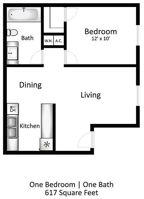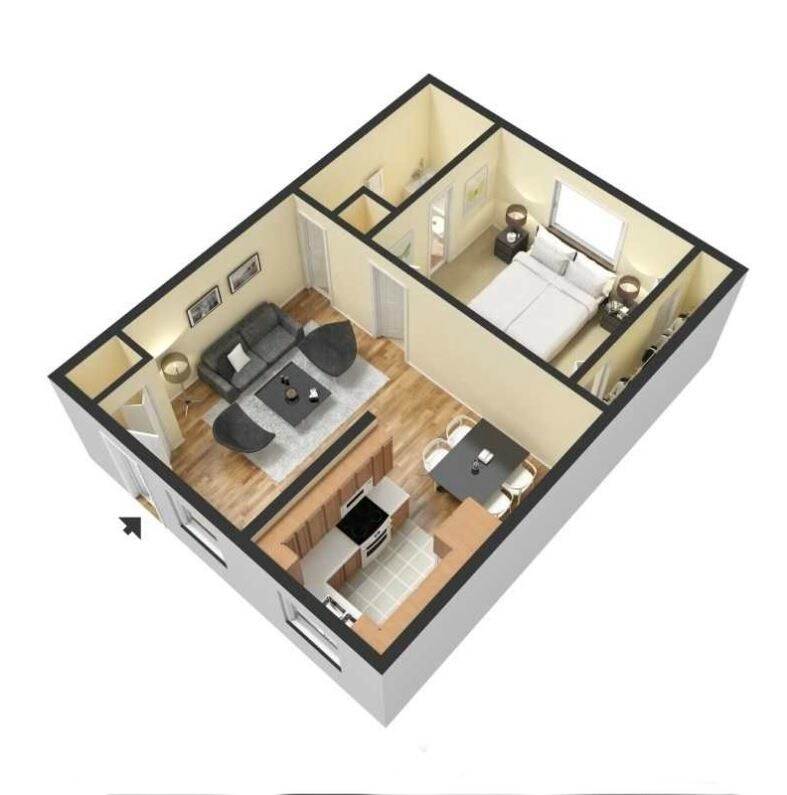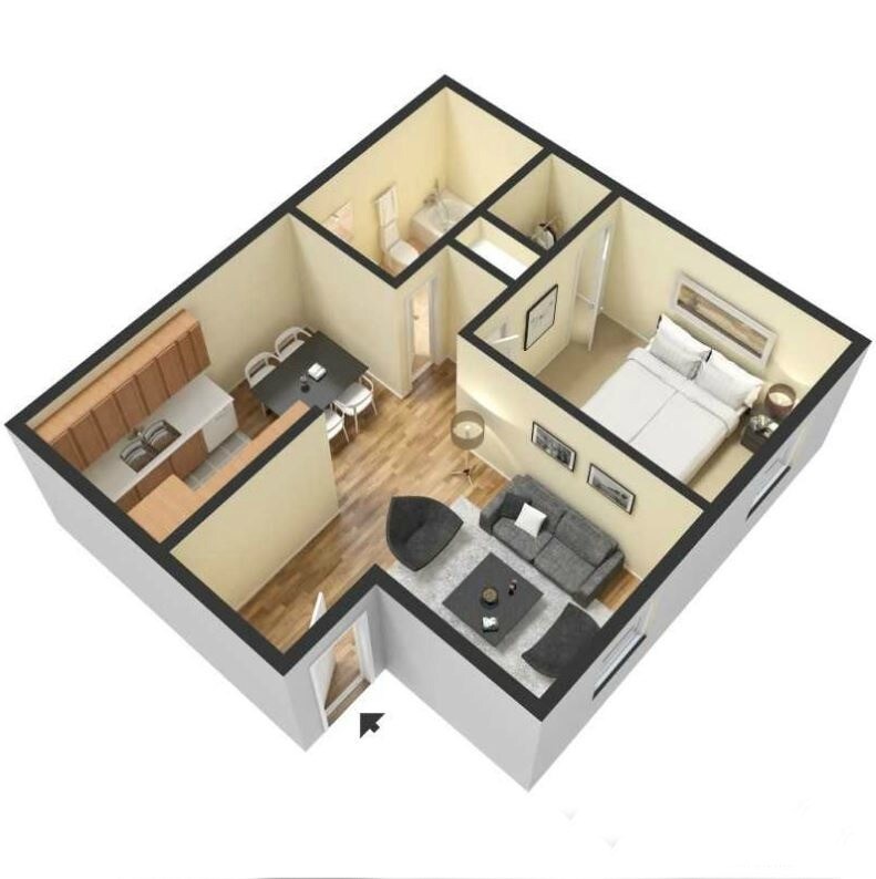 1 Bed, 1 Bath, 617 sq ftAvailable NowLargest 1 BedroomThis is the largest 1 Bedroom at this PropertyModel Gallery