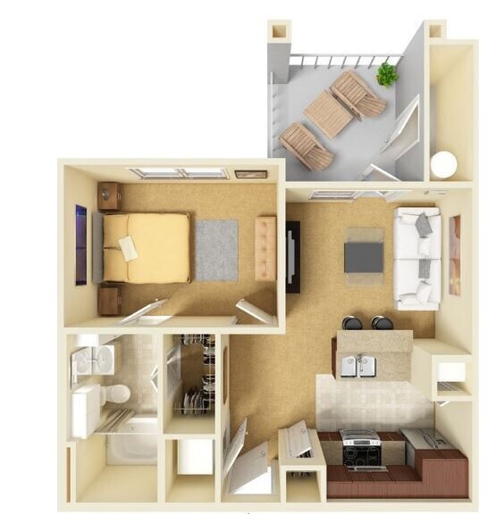 Apartment Model: A1From $1,2351 Bedroom, 1 Bath, 526 sq ftAvailable NowFloor plans are artist's rendering. All dimensions are approximate. Actual product and specifications may vary in dimension or detail. Not all features are available in every rental home. Please see a representative for details.