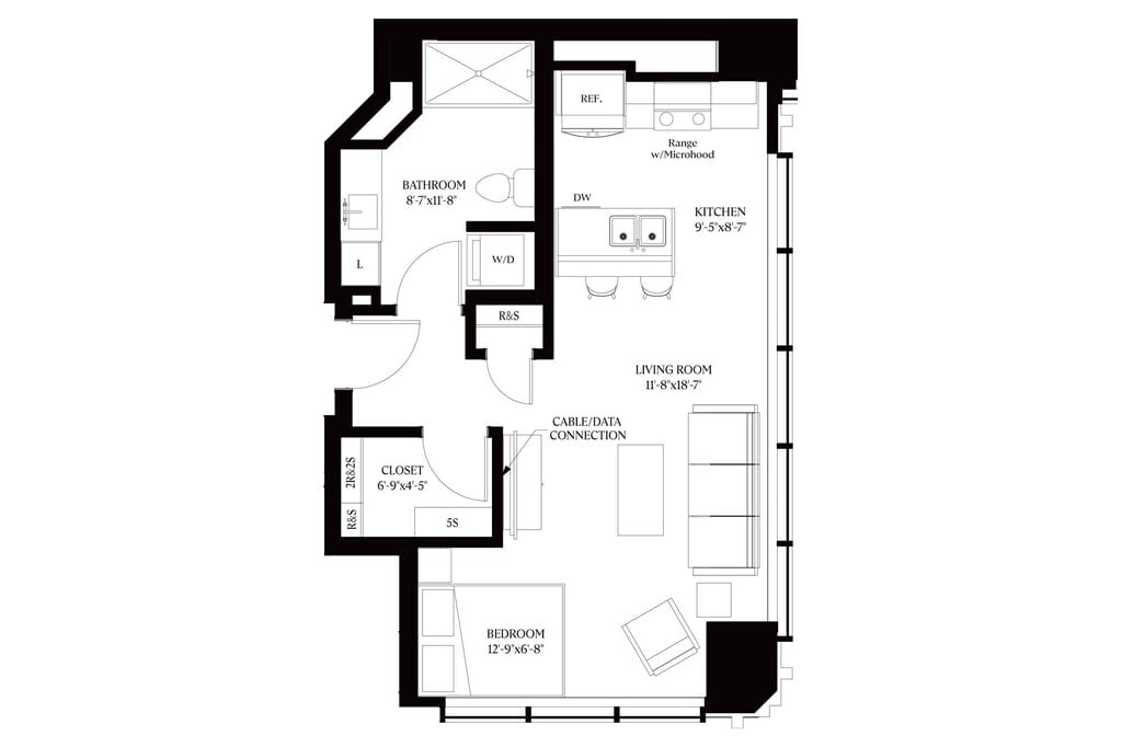 Apartment Model: The Arnold$1,378Studio, 1 Bath, 619 sq ftUnavailableThe Arnold - Floorplan 1 1 Bedroom