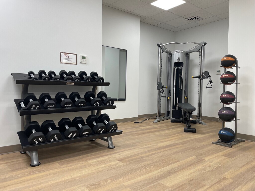 July 29, 2015Has dry cleaners, hair salon, and a deli. Very tiny gym. Horrible management, poor air conditioning system.Review from Apartments.com