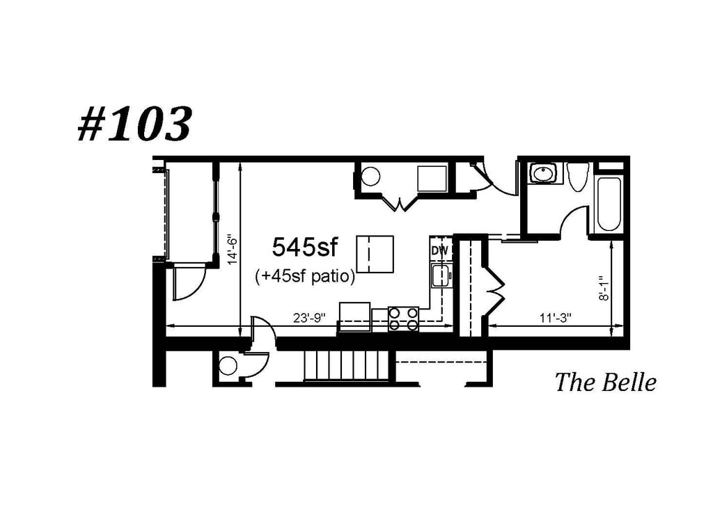Belle - Floorplan 8 Apartment Unit: 209Apartment Model: Belle1 Bedroom, 1 Bath, 640 sq ftAvailable NowOne Bed One Bath