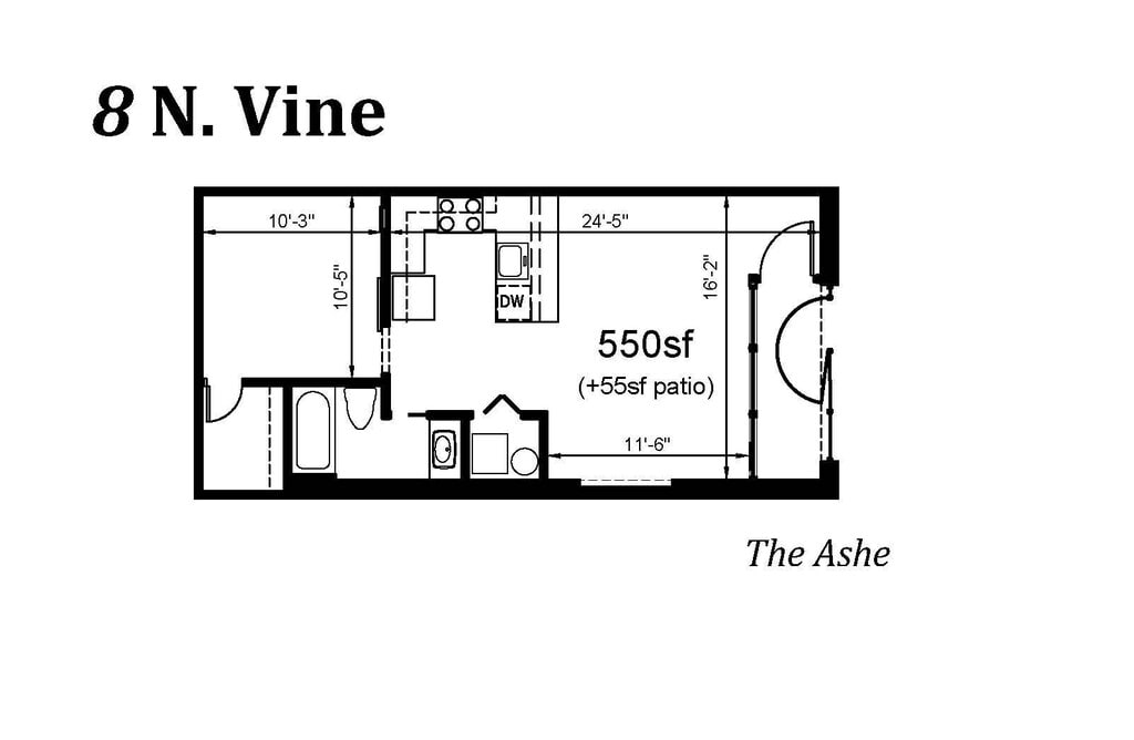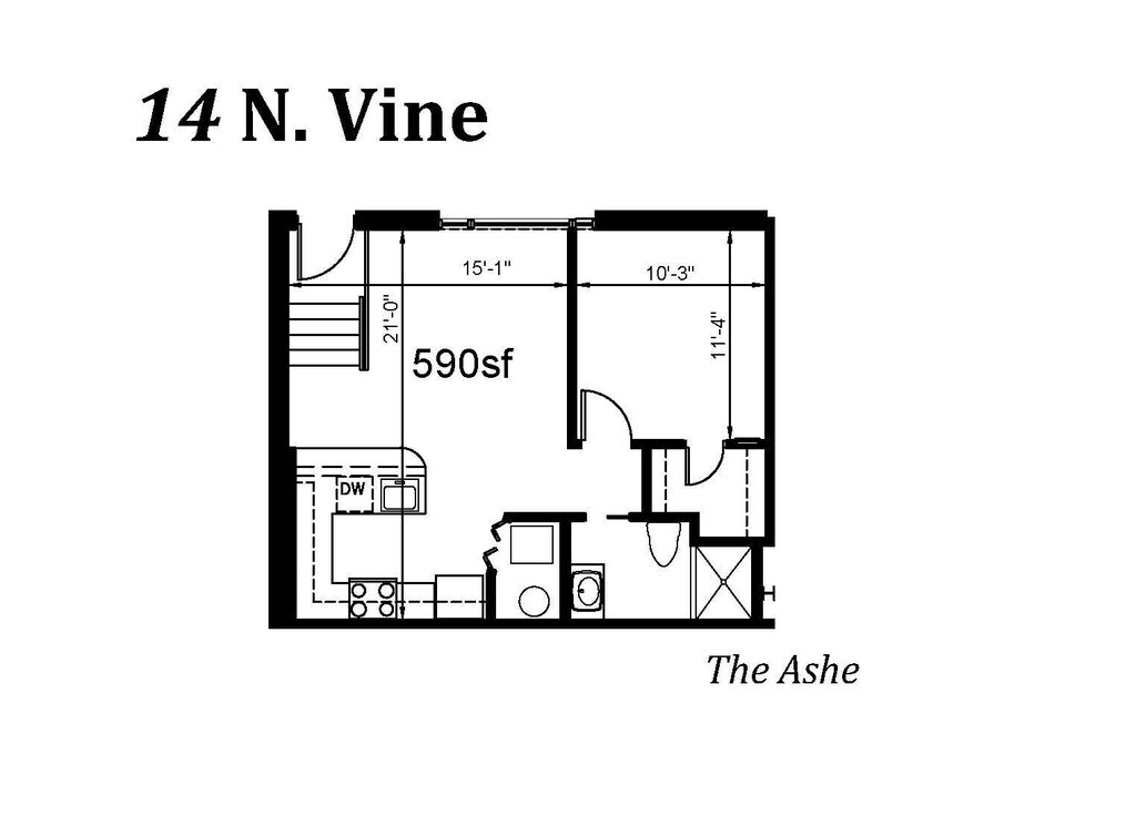 Ashe - Floorplan 11 Apartment Unit: 014Apartment Model: Ashe1 Bedroom, 1 Bath, 590 sq ftAvailable NowBelle