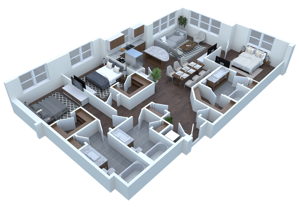 - Studio, one, two and three bedroom floor plans