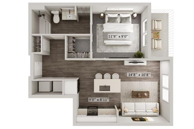 1 Bed, 1 Bath, 810 sq ftModel Gallery