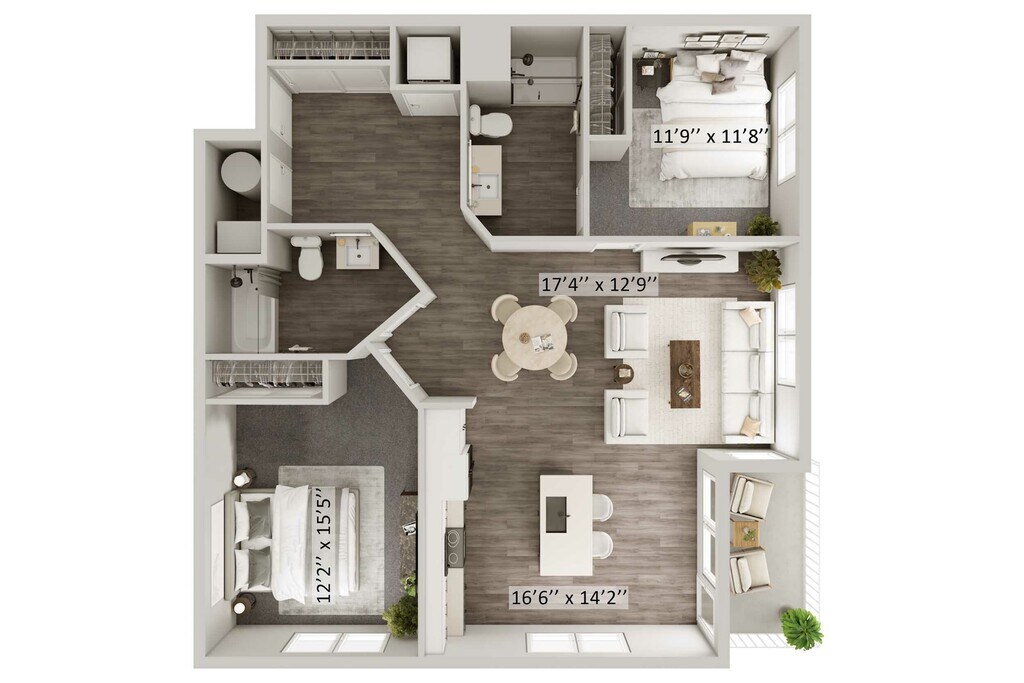 Apartment Model: WillisFrom $2,4342 Bedroom, 2 Bath, 1387 sq ftAvailable Now![]()