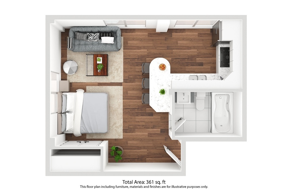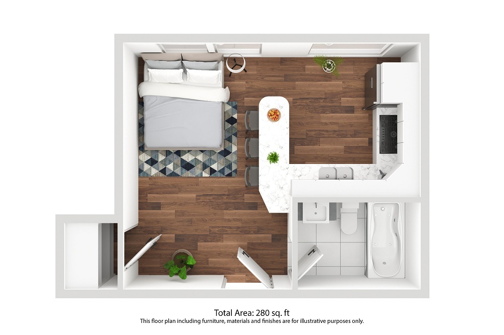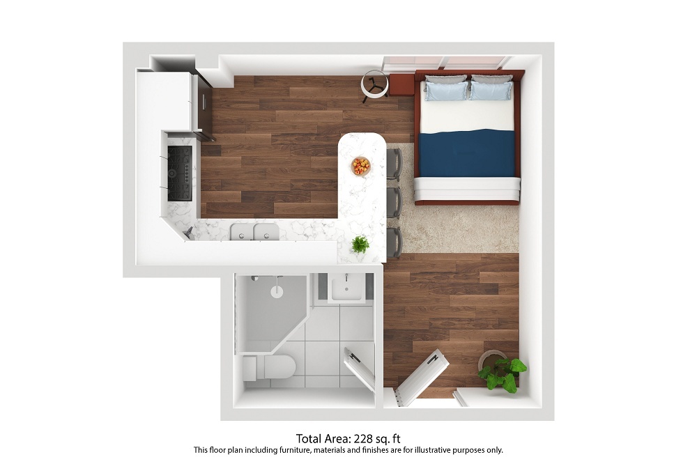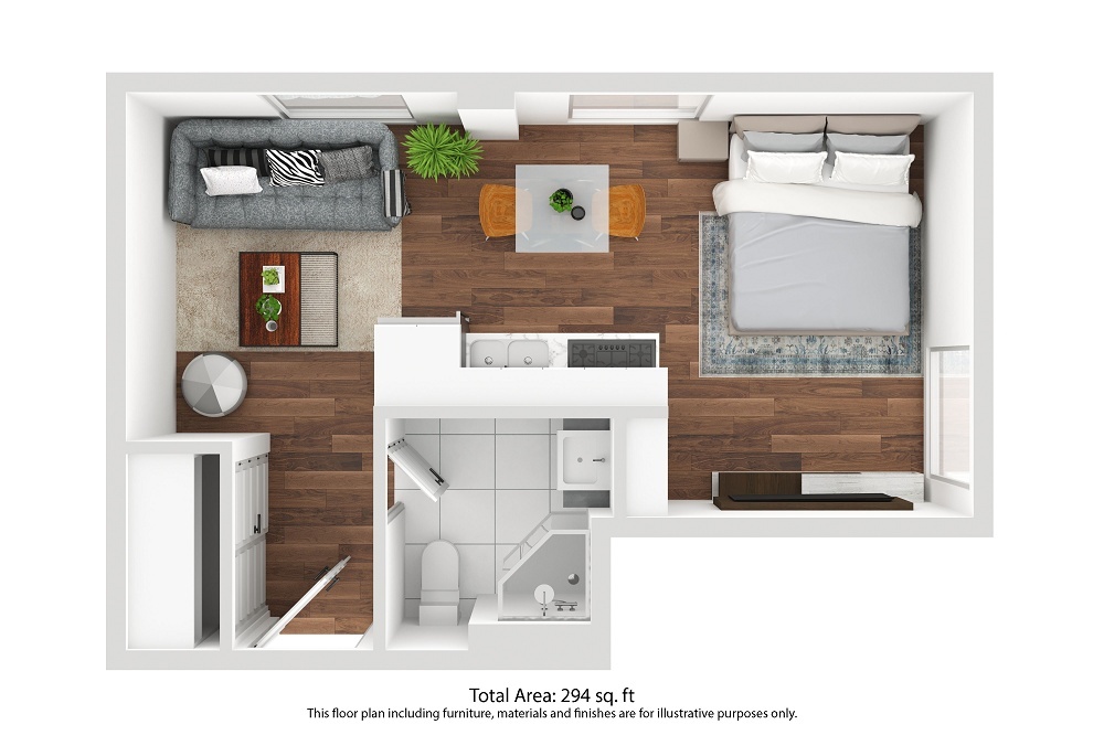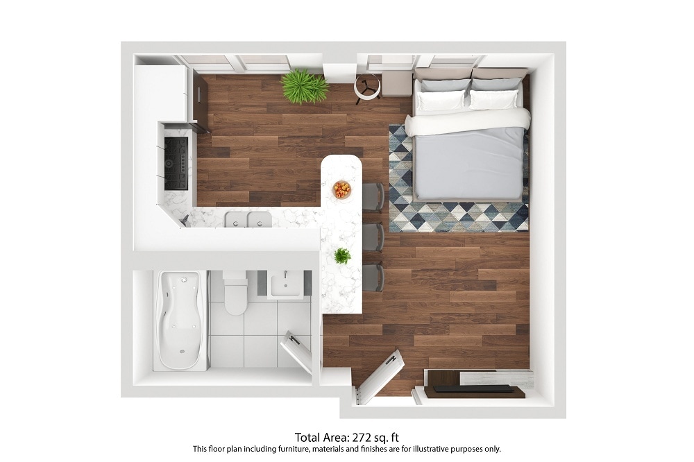 Studio, 1 Bath, 275-325 sq ftAvailable August 14, 2026Model Gallery