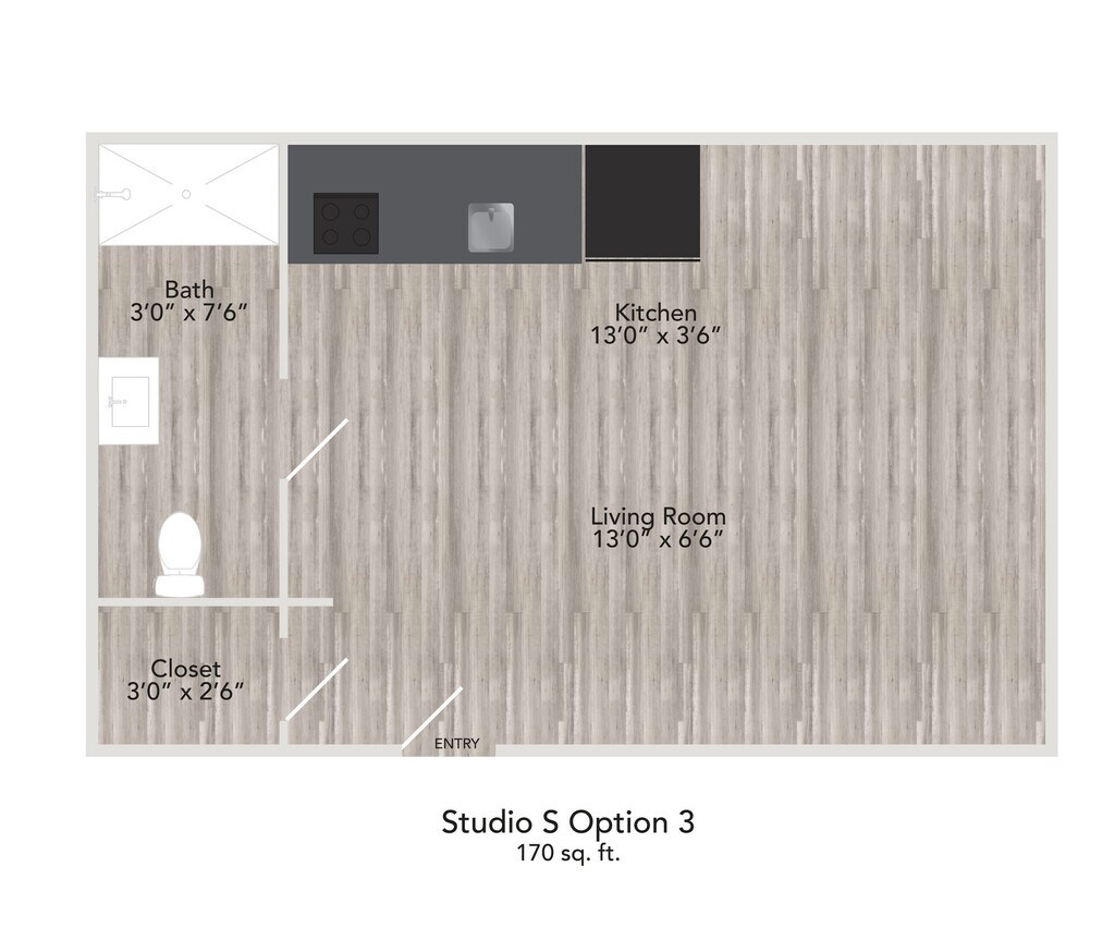 Apartment Model: STUDIO SAFrom $999Studio, 1 Bath, 170 sq ftAvailable NowFloorplansPhotos![]()